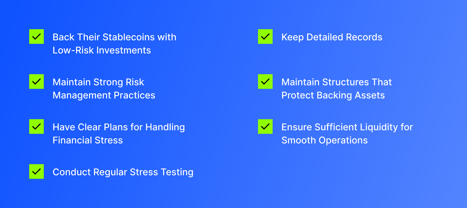 The guidance for single currency-pegged stablecoins (SCPS) introduces a principles-based framework to ensure stability and transparency in the digital asset space. Instead of imposing rigid rules, they focus on key safety measures. Companies must: