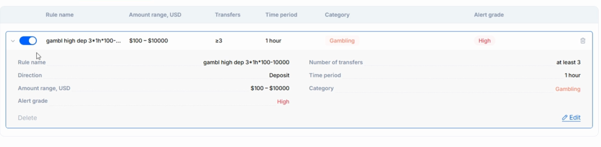 Note: As for now, rules are checked continuously without cooldown or suppression logic. This means that if suspicious activity continues, multiple alerts may be generated within the same time period. Compliance teams should therefore tune rule thresholds carefully to balance detection sensitivity and alert volume.