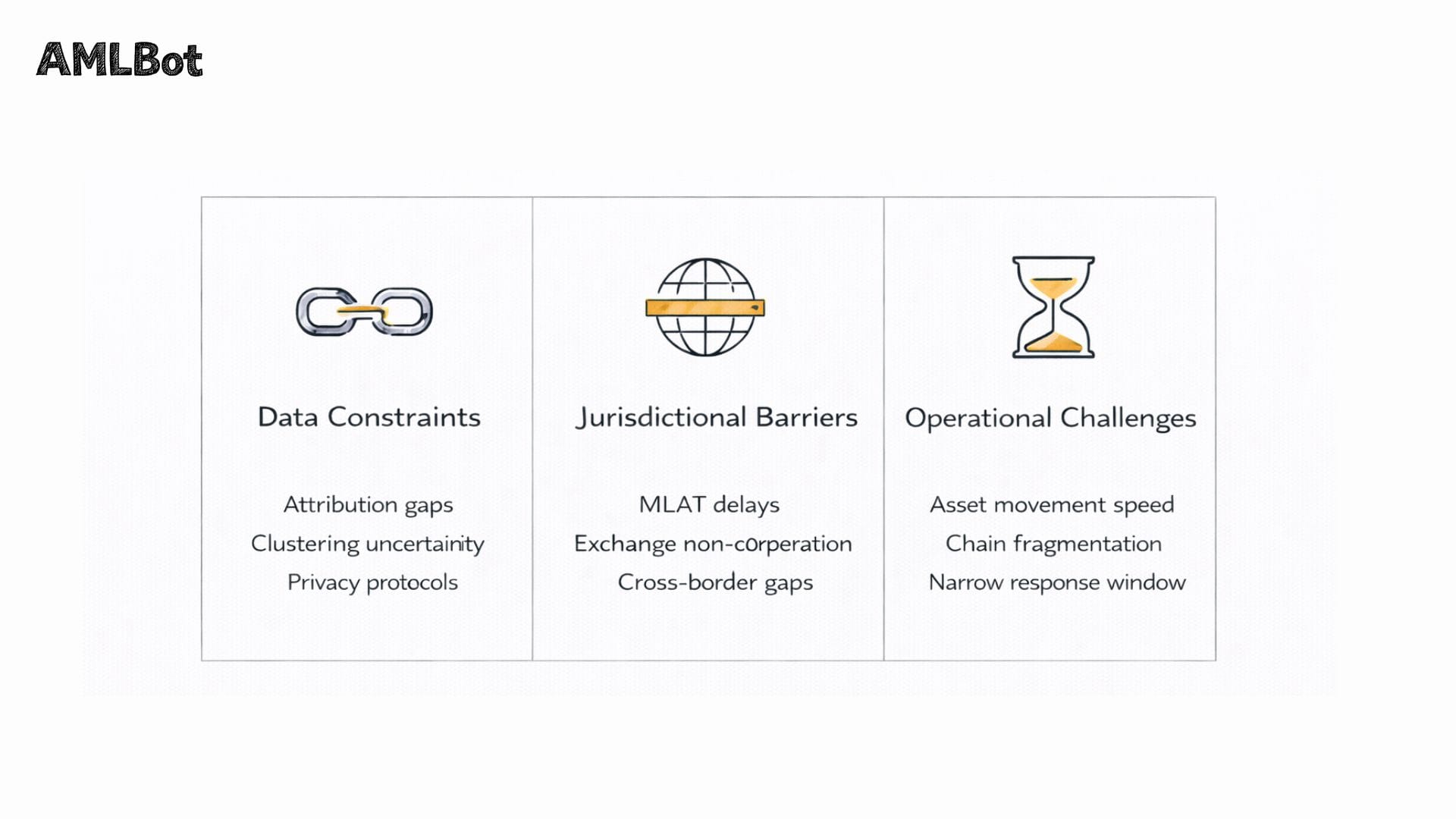 It is also worth noting that jurisdictional barriers are not limited to uncooperative or unregulated exchanges. Even within well-regulated jurisdictions, the legal process required to compel disclosure, court orders, production notices, or formal MLAT requests takes time that the investigation may not have. Organizations operating across multiple jurisdictions face the additional complexity of determining which legal framework governs a given request and which authority has standing to make it. These procedural realities are not failures of the investigation; they are structural features of the legal environment in which blockchain investigations operate.